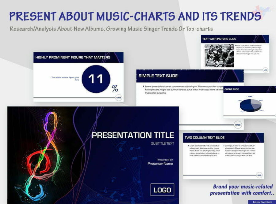 Use MusicPremium PPT template for doing music album or entertainment industry overviews.